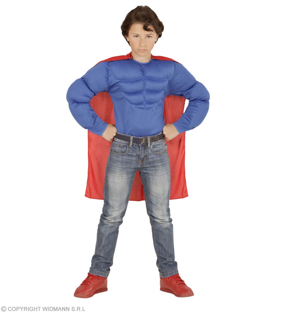 Kostīms Supervaronis 140cm (muskuļu krekls,apmetnis)
