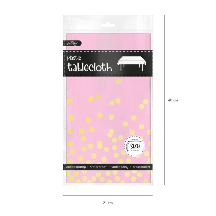 Galdauts rozā ar zelta konfeti 137 x 274cm pvc
