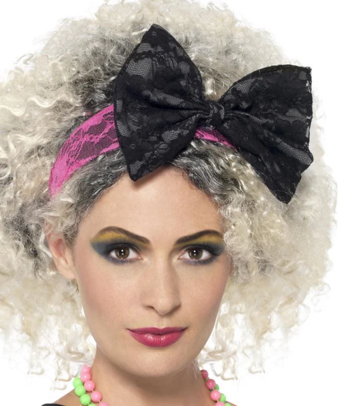 Matu stīpa ar banti 80.gadi melna/rozā