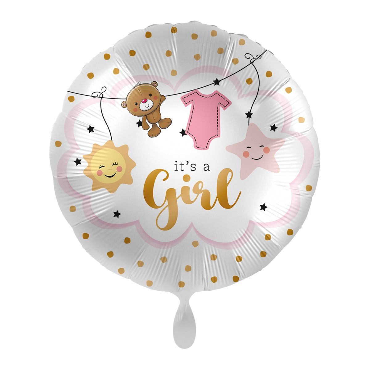 Folija balons round print 17"/43cm 1/1gab Baby Girl is Coming - It's a Girl