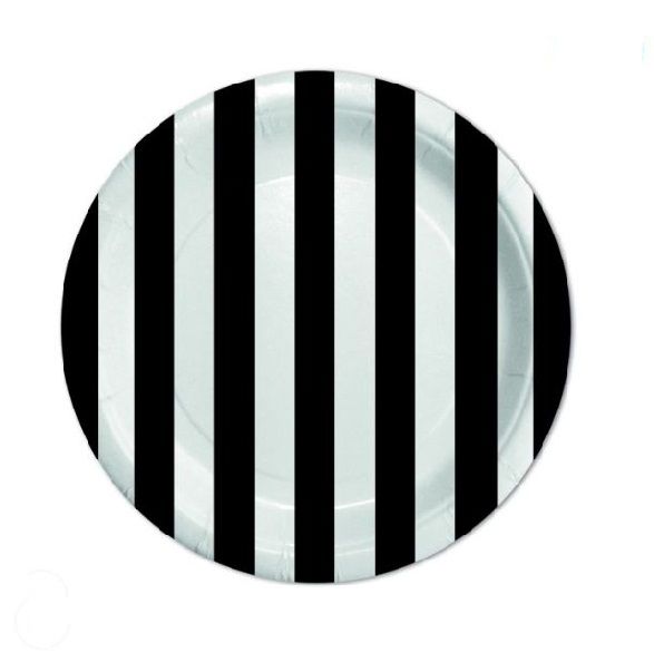 Šķīvji Stripes Black d18cm 1/8gab papīra