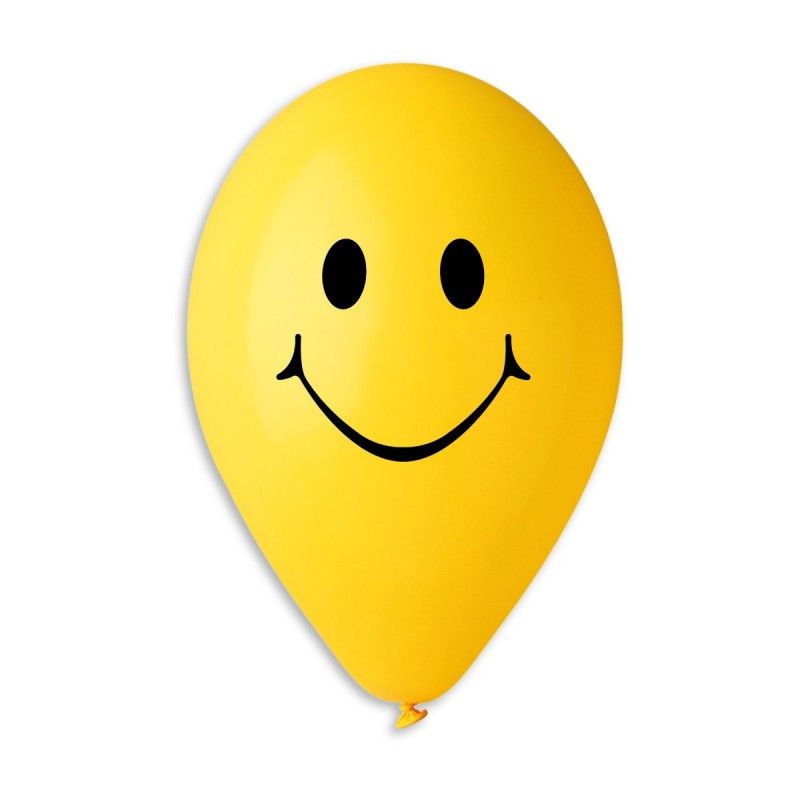 Lateksa baloni print round 30cm/11" 1/100gab Smile Face yellow
